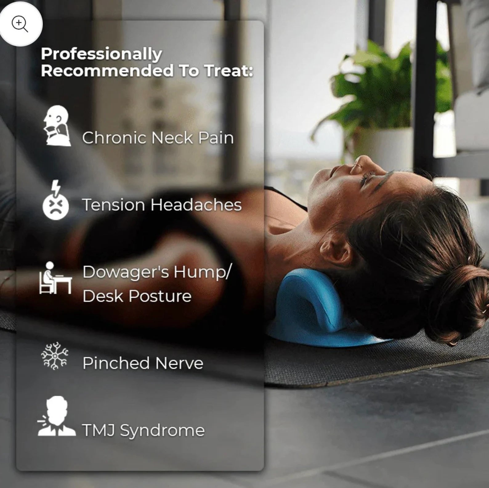 - Decompress and hydrate the discs and restore the natural cervical alignment without medication or surgery.