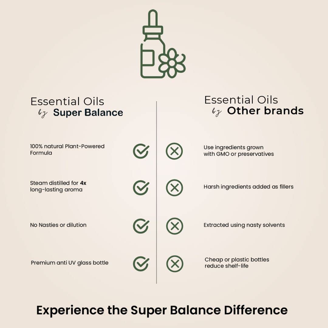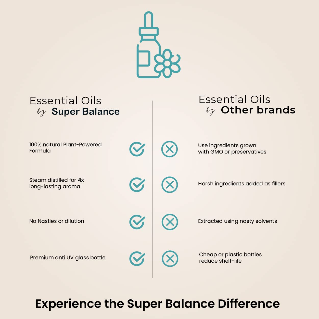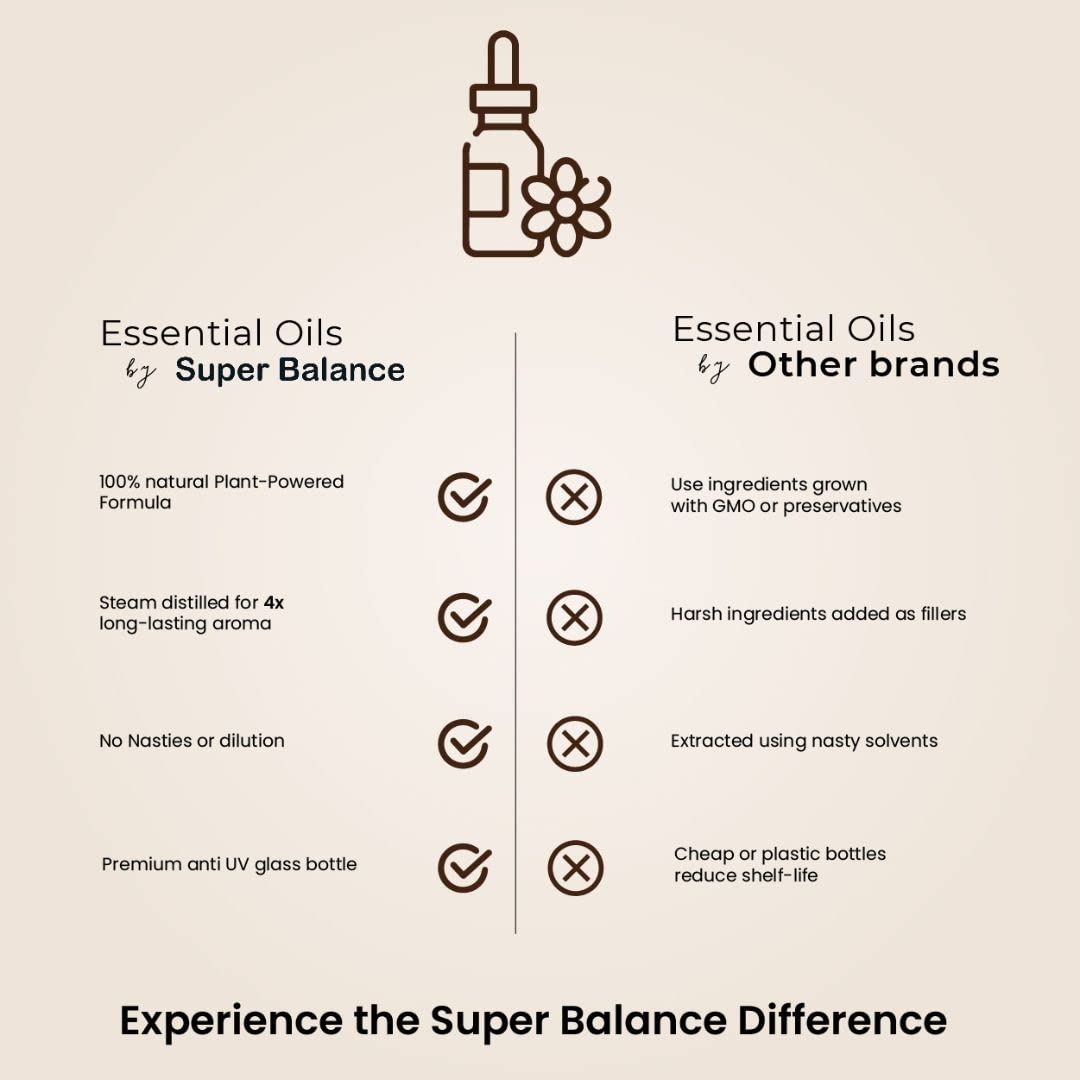 Super Balance Essential Oils are pure and steam distilled from leaves, roots, flowers & fruits.
